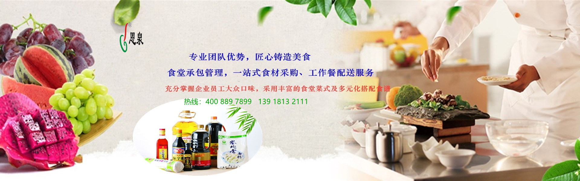 上海恩泉餐飲管理有限公司是一家有十六年機(jī)關(guān)食堂承包、園區(qū)餐飲管理、工廠(chǎng)食堂托管、企業(yè)飯?zhí)猛獍?、職工蔬菜配送、員工餐飲托管經(jīng)營(yíng)管理經(jīng)驗(yàn)的食堂承包和餐飲服務(wù)專(zhuān)家,至今已發(fā)展成為一個(gè)集食堂承包經(jīng)營(yíng)管理、糧油蔬菜副食批發(fā)配送、食堂餐飲從業(yè)人員培訓(xùn)等為一體的中型餐飲管理服務(wù)企業(yè).現(xiàn)在是長(zhǎng)江三角洲地區(qū)最具實(shí)力和影響力的承包企業(yè)食堂與學(xué)校食堂的餐飲服務(wù)公司。 公司自創(chuàng)建之日就秉誠(chéng)“以食為天,以人為本”的宗旨,廣泛吸納優(yōu)秀管理人才,培養(yǎng)擴(kuò)大優(yōu)秀管理隊(duì)伍,加大食品衛(wèi)生監(jiān)控力度,廣納貨源輸入渠道,加強(qiáng)辦公現(xiàn)代化管理等一系列措施,為公司穩(wěn)健拓展奠定了基礎(chǔ)?,F(xiàn)有食堂承包管理、技術(shù)、普通員工100余人,與長(zhǎng)江三角洲的70多家中大型機(jī)關(guān)學(xué)校企業(yè)建立了長(zhǎng)期穩(wěn)定...